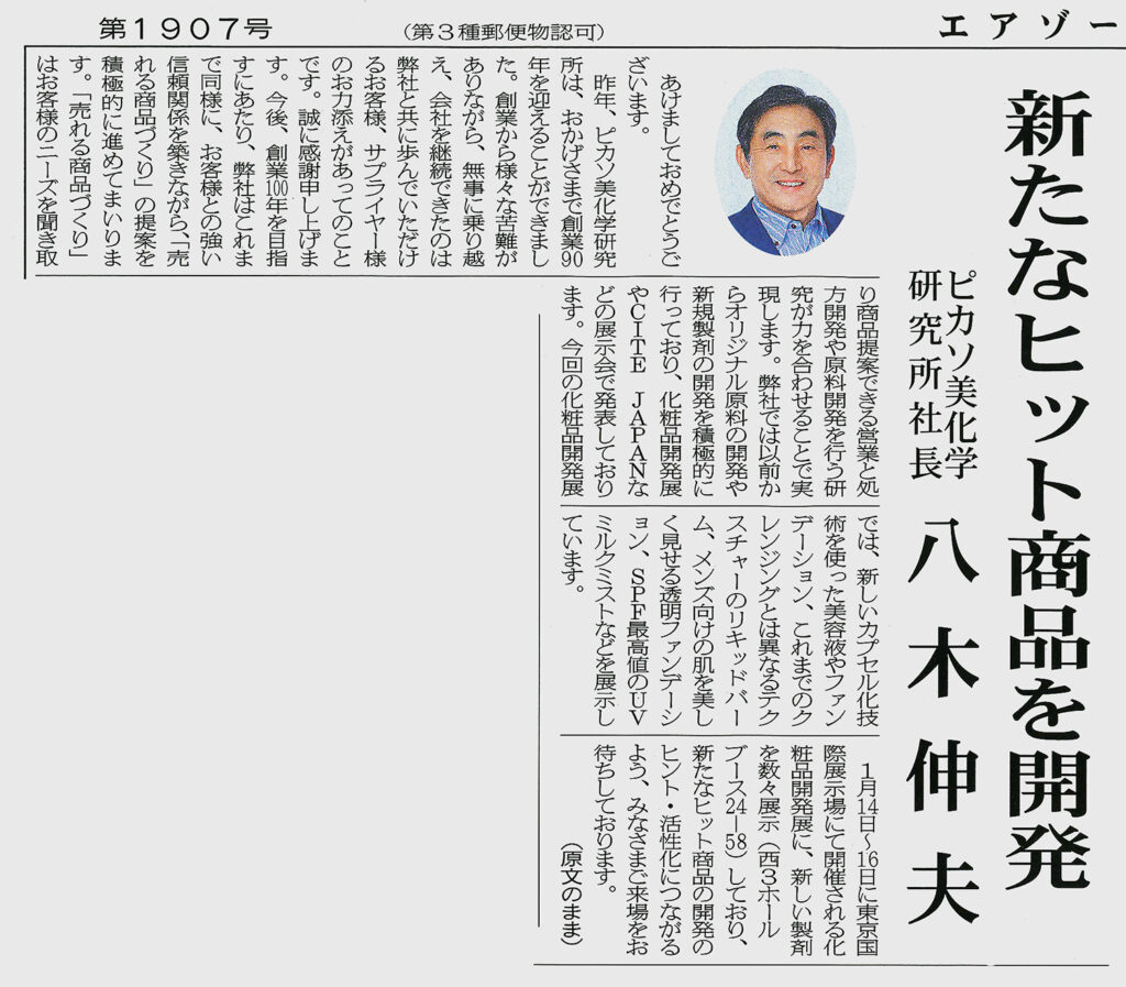 弊社代表のインタビューがエアゾール&受託製造産業新聞に掲載されました。